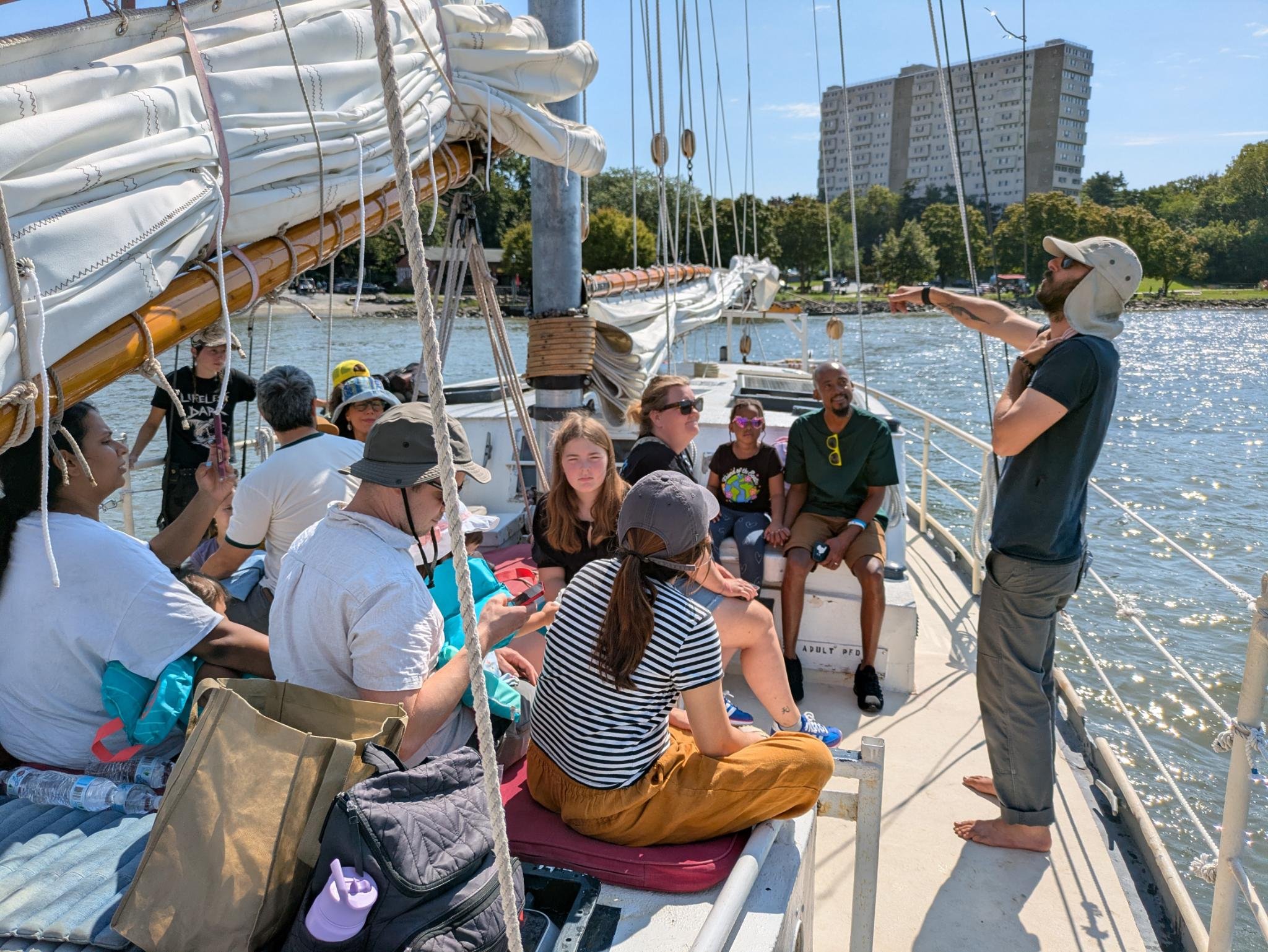Through Waterfront Wednesdays and Sankofa, more than 300 people sailed with us from Hudson for free. We also brought programming to new waterfronts during cargo runs—partnering with the Poughkeepsie Public Library to do story time under sail, Milton Landing to do deck tours and a movie screening, and the Village of Dobbs Ferry to host public sails during a waterfront market this Fall.